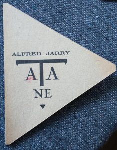 Messaline 7° mille – Paris, Fasquelle 1922 – ex-libris tampon au titre - Gestes et opinions du docteur Faustroll pataphysicien – Paris, Stock, 1923 – in-18 - L'amour en visite nouv. éd. - Cabinet du livre, 1928 – in-8 : front. gr. par DAOUT – 1/1930 - Les minutes de sable mémorial... - Fasquelle, s.d. (1932) - Ubu enchainé – Paris, Fasquelle, s.d. - (médiocre) - Ubu cocu – Genève, Paris, les 3 collines, 1944 – E.O. - Le Surmale Fasquelle (Ca 1945) - L'autre Alceste – Fontaine, 1947 (collection l'age d'or) – in-18 - Les jours et les nuits – Mercure de France, 1948 ex. n°669/1500 sur vélin Alma - L'amour absolu – Paris, Mercure de France, 1952 – in-18 : N° 264/1900 sur alfa - L'Objet aimé – Paris, Arcanes, 1953 – ill. Töpffer - L'Ymagier du père Ubu - Collection Hermès – 1980 – n° 167/777 - L'ouverture de la pêche - Collège de 'Pataphysique, 80 [1953] – n° 142/276 sur vert aqueux - Le futur malgré lui – Collège de 'Pataphysique, 81 [1953] - E.O. - in-8 : n° 281/276 sous couverture grise – tirage à 333 ex. - Tatane E.O. - Collège de pataphysique, 81 [1954] - format triangulaire - Tirage à 333 ex., celui-ci n° 225/274 sur papier chaleureux - La royauté du père Ubu – 88 [1961]– in-8 :12 p. - sous chemise, hors commerce - Les Antliaclastes – Saint-Brieuc 1888 - Collège de 'Pataphysique (1964) - Réponses à des enquêtes – Collège de 'Pataphysique, 97 [1970] – N° 123/399 sur Lafuma avec pub. pour les représentations d'Ubu roi au théâtre de Plaisance et pour Les Crampes - Les Pouchinels – Institut Limbourgeois des hautes études pataphysiques, CVII [1979] - n°143/333 (mouillure) - JARRY (Alfred) Les alcoolisés. Opéra chimique... mis en collages par Herny Meyer – 1991 – in-8 : n° 287/333 sur papier rose (joints cartes postales et tracts) - Ubu sur la butte mis en collages par Henry Meyer - Collège de pataphysique, 1996 – n° 336/444.