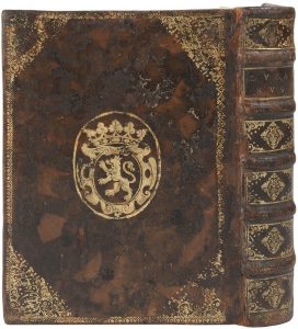In-4, 189 x 136 : (16 ff.), 285 ff., (1 f. blanc). Veau marbré, roulette dorée en encadrement, motifs de volutes dorées aux angles et armes dorées au centre sur les plats, dos à nerfs orné, tranches dorées (reliure de la fin du XVIIe siècle).{CR}{CR}Nouvelle édition de La Pharsale de Lucain avec les commentaires de l’humaniste italien Johannes Sulpitius Verulanus (1430?-149.?) et du poète allemand néo-latin, professeur de lettres classiques, Jacobus Micyllus (1503-1558).{CR}{CR}Ce poème épique est divisé en dix livres, les huit premiers ayant pour argument la guerre entre César et Pompée, les deux derniers racontant les expéditions d’Afrique et d’Égypte.{CR}Exemplaire de prix, offert en 1688 à un élève du Collège royal de la Compagnie de Jésus de Poitiers et relié aux armes de l’avocat et maître des requêtes Nicolas-Joseph Foucault (1643-1721) qui fut intendant de cette ville de 1685 à 1689.{CR}{CR}Quelques restaurations à la reliure. Mouillures claires sans gravité.