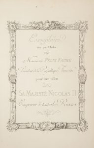 In-plano, 748 x 530. Demi-maroquin rouge à coins, filets dorés, dos à nerfs orné, tête dorée (reliure de l’époque).{CR}{CR}Réimpression sur papier vélin de Rives, peut-être unique, de ce superbe livre de fêtes, spécialement tiré par ordre du président de la république Félix Faure pour être offert à l’empereur de Russie Nicolas II lors de sa visite en France en octobre 1896.{CR}L’édition, entièrement gravée, est de format in-plano, les feuillets sont montés sur onglets. Elle débute par un feuillet de dédicace à l’empereur de Russie, suivi de la reproduction des planches de l’édition originale du XVIIIe sièlce. La publication comprend ainsi un titre gravé, un poème dédié à la religion (2 planches), un avertissement (3 planches) puis 9 grands tableaux sur double page représentant les différents moments du sacre, depuis le levé du roi jusqu’au festin royal, chacun accompagné de 2 ou 3 feuillets de description et d’une explication des figures allégoriques répondant au tableau. L’ouvrage se termine par 30 planches de costumes, ceux du roi et des principaux personnages ayant participé ou assisté au sacre, et par un feuillet double de table.{CR}Le texte a été rédigé par Danget ; les planches ainsi que les cartouches et les bordures ont été réalisés par Audran, Beauvais, Cochin père, Desplaces, Duchange, Dupuis, Larmessin, Tardieu, Edelinck, Chereau, Drevet, Haussard et Petit.{CR}Nous n’avons pu répertorier aucun autre exemplaire de cette réimpression qui est d’une remarquable qualité, faite à partir des cuivres originaux.{CR}Exemplaire parfaitement conservé, si ce n’est les coins émoussés et des frottements aux nerfs. À l’intérieur, on note simplement de légères salissures au premier feuillet et quelques déchirures et des traces de feutre rouge dans les marges de la planche du festin royal.