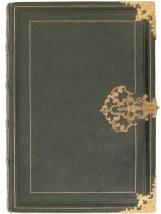 In-8, 263 x 181 : portrait, titre, XXII, 335 pp. Chagrin vert sombre, filets dorés et à froid en encadrement sur les plats, pièces métalliques dorées et ciselées aux angles et au centre des bords côté gouttière, fermoir, dos à nerfs orné, encadrement de chagrin vert sombre à l’intérieur, orné de filets et de fleurons dorés, tranches dorées (reliure de l’époque).{CR}{CR}Carteret, III, 458-459.{CR}{CR}L’un des beaux livres illustrés de l’époque romantique, comprenant en premier tirage un portrait de l’auteur, un titre et de nombreuses vignettes d’après les dessins de Gérard Séguin, Daubigny, Steinheil, etc. Le portrait, le titre et les grandes vignettes ont été gravés sur acier, les petites vignettes ainsi que les ornements ont été gravés sur bois.{CR}{CR}Ce texte était l’un des plus populaires de la première moitié du XIXe siècle, racontant les mémoires du poète italien Silvio Pellico qui avait été arrêté pour conspiration en 1820 puis emprisonné tour à tour à Milan, à Venise et dans la prison de Spielberg en Moravie où il resta 10 ans. Il est complété du discours intitulé Des Devoirs des Hommes.{CR}{CR}Très bel exemplaire en reliure de l’époque d’un type rare, comprenant aux angles et au centre des bords côté gouttière, des pièces de métal doré, ciselé et ajouré, les deux pièces centrales étant jointes par un fermoir également ciselé.{CR}{CR}Exemplaire d’une parfaite fraîcheur, avec un tirage des gravures d’une grande pureté et d’une grande netteté ; il provient de la bibliothèque de l’homme d’État Michel Debré (1912-1996).{CR}{CR}Provenance : Michel Debré, avec ex-libris.