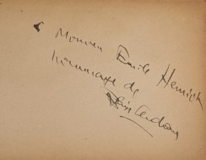 In-8, 189 x 140 : 195 pp., (6 ff.), 8 planches, couverture illustrée. Demi-maroquin noir, dos lisse, non rogné, couverture conservée (reliure moderne).{CR}{CR}Cet ouvrage réunit des textes que Colette consacra à ses chats et provenant des divers ouvrages qu’elle avait publiés jusqu’alors. Il parut dans la collection « Scènes de la vie des bêtes » dirigée par Elian-J. Finbert.{CR}L’édition est illustrée d’une photo de Colette avec l’un de ses chats sur la couverture et de 16 photographies en noir de chats réparties sur 8 feuillets hors texte.{CR}Exemplaire de presse, offert par Colette à son ami le poète, critique et essayiste Léo Larguier (1878-1950), avec cet envoi autographe :{CR}Cher Léo Larguier, bonne année à vous, - et à moi, qui sommes souffrants, de tout mon cœur. Colette{CR}{CR}Très bel exemplaire en reliure non signée mais de qualité. Déchirure sans manque dans la marge d’un feuillet (pp. 143-144).{CR}Provenances : Léo Larguier, avec envoi autographe de l’auteur. - Ex-libris MD.