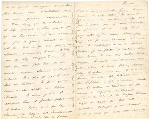 Marie d'AGOULT. 19 L.A.S., 1860-1872, à son gendre Guy de CHARNACE ; 67 pages in-8 ou in-12. BELLE ET INTERESSANTE CORRESPONDANCE AVEC SON GENDRE ET CONFRERE, mari de sa fille Claire, journaliste, littérateur et agronome. Saint-Gervais les Bains dimanche [2 septembre 1860]. Nouvelles de sa cure, et de la vue de LL. MM. à Sallanches. " Mon ami, mon cher Guy, j'aurais voulu redevenir un centre et appliquer doucement mon expérience de la vie à rendre tolérable et bienséant ce qui ne semble plus pouvoir être heureux. Il m'est très cruel de ne pouvoir plus rien pour des êtres qui me sont si chers mais je persiste à croire que vous pourrez beaucoup auprès d'une personne au fond pleine de raison et de bon vouloir si vous savez mettre un peu d'art dans vos rapports et parler comme je vous ai entendu le faire avec moi, en frère désintéressé et dévoué. Le voyage d'ailleurs sera un bon dérivatif à l'ennui qui me paraît, à vrai dire, l'unique cause de tout le malaise moral et physique, et quand nous reviendrons d'Italie, ce qui nous semble impossible à réaliser aujourd'hui, se fera peut-être tout simplement ". 14 septembre. Sa joie et satisfaction de voir Guy dans des dispositions selon son cour ; ses efforts seront récompensés : " je vous donnerai les meilleurs lettres possible. J'irai moi-même à Turin [.] également très volontiers à Florence et quelles que soient les projets ou les désirs de votre femme je prendrai Daniel très volontiers le jour où cela pourra entrer dans vos convenances "... Lundi [décembre 1860]. Elle se réjouit de penser qu'elle le reverra au printemps. " Si vous voulez bien pour cette année encore suivre mes avis [.] je me flatte qu'au lieu de nous donner les uns aux autres trouble, chagrin tourment, nous pourrons nous entre-aider et nous faire, chacun selon sa nature, une vie si ce n'est heureuse, du moins très tolérable ". Elle aurait une préférence pour Meudon, Saint-Germain ou Versailles, ou bien le quartier des Champs-Élysées, afin de refaire son milieu par une vie stable. Elle n'a pas encore reçu la lettre de Nefftzer, annoncée par Dollfus, mais elle serait très disposée à collaborer [à la Presse] par son drame de Jacques-Cour. " Vous savez que M. de BÜLOW et LISZT viennent à Paris pour la 1ère rep. du Tannhäuser [13 mars 1861]. Je vous avoue que j'ai de grandes curiosités de ce côté-là. Tout ce que vous pourrez m'apprendre, communiquez-le-moi. N'allez-vous pas chez WAGNER ? ". Nice 6 janvier 1861. Remerciements pour l'envoi de La Presse : " je vous trouve toujours en progrès et accusant de plus en plus votre personnalité dans votre style qui est également exempt de banalité et de prétention ". Il est question aussi d'une visite de COSIMA, au printemps. 11 novembre. Elle l'exhorte à ne pas se laisser aller à la tristesse ; pour aimer la vie il a des facultés intellectuelles, un enfant doué et, " à défaut de l'amour conjugal qui n'est si j'en crois mon expérience, le partage de personne en ce tems-ci il ne dépend que de vous de vous assurer l'amitié d'une personne qui, j'en ai la conviction profonde, tiendra avant peu le premier rang entre les grands esprits de son tems et de son pays. [.] Nous nous sommes trompés vous et moi, et tous nos amis avec nous en lui croyant un caractère sans énergie et sans initiative. Il m'a suffi de l'entendre en ces derniers tems pour me convaincre que tout ce que nous pouvions considérer comme actes de faiblesse était actes de force et [.] ce but étant infiniment honorable, plus elle s'en rapprochera plus elle trouvera de satisfaction et en répandra autour d'elle. Quant aux influences que vous sembliez redouter, j'ai lieu de croire également que le vraisemblable en cette circonstance n'est pas le vrai et que si elle a subi des influences elles ne sont pas de nature à troubler sa vie, tout au contraire ". 4 janvier [1862]. Elle a appris l'accident de Guy : " Moi j'ai commencé l'année par une foulure à la hanche qui m'a causé des douleurs à crier mais un rebouteur fort en vogue, Mr le Dr Le Bâtard, m'a soulagée instantanément et guérie comme par magie. L'empereur est comme nous en proie aux douleurs. Il s'est mis au lit après les réceptions du jour de l'An ". Jeudi [5 juin]. Anecdote sur " une scène d'explication " entre BLANQUI, " en démence ", et PELLETAN. Elle a répondu à une lettre de part de Mme SAND... " Mon frère me raconte qu'il a donné à son fils mon Hist. de 48, en l'exhortant à travailler et à tâcher d'en faire autant un jour ! (Emmanuel est républicain). On paraît avoir oublié qu'on m'a offert, après la mort de ma mère, la réconciliation avec la famille "à condition que je n'écrirais plus !" ".Elle lui enverra son " livre sur l'Italie " [Florence et Turin] dès parution. Bellaggio 8 septembre 1863. Elle souhaite recevoir tous les numéros de la Presse où figure Guy : " j'ai la manie de vous faire mes observations littéraires pour vous faire part de ma vieille expérience ". Impressions du Saint-Gothard et de Bellaggio, et nouvelles de son travail sur La Hollande et Dante et Goethe. Bellaggio 12 septembre. Elle a rencontré à Brunnen la comtesse d'HESPEL, " la tante de Nélida " : " J'ignore si elle savait que son nom figurait dans ce roman mais elle a été très aimable et nous avons fait ensemble plusieurs promenades pendant lesquelles je riais in petto de ce hasard ". Elle n'a pas été désouvrée : " je rapporte deux travaux qui me paraissent supérieurs à tout ce que j'ai encore publié. [.] Je souhaite beaucoup que mon dialogue sur Dante et Goethe vous plaise ". La Pierre de Romanèche [septembre]. " Je suis allée de Bellaggio à Milan. Mes amis de Turin, les Peruzzi entre autres, sachant que je ne pouvais les aller trouver, sont accourus avec un empressement très aimable. Le Roi m'a fait écrire à l'occasion de mon livre. [.] A Genève, j'ai passé la journée chez la Csse KAROLY ". [Début août 1864]. Reco
