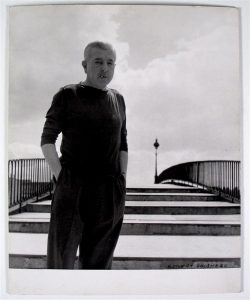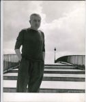 29,8 x 23,5 cm contrecollée sur carton, tampon du photographe au dos. Portrait de Jacques PREVERT, mains aux poches, cigarette aux lèvres, sur les marches d'une passerelle. ON JOINT un portrait d'Albert CAMUS (tampon de l'Agence de presse Bernand au dos).
