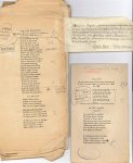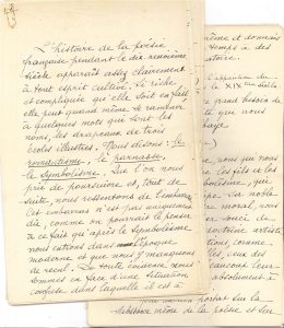 34 pages in-fol. (dernier feuillet un peu effrangé). CONFERENCE INEDITE SUR LA POESIE FRANÇAISE, évoquant successivement le romantisme, le Parnasse, puis le symbolisme et son prolongement dans Dada et le surréalisme ; après avoir parlé de Paul Valéry, Duhamel termine en parlant longuement du groupe de l'Abbaye. ON JOINT un dossier d'EPREUVES corrigées pour l'Anthologie de la poésie lyrique en France (Leipzig, Insel-Verlag, 1923, réalisée à la demande de Stefan Zweig) : jeu incomplet très corrigé (64 ff.), 1ère et 2e épreuves mises en pages corrigées ; plus un ex. de l'édition française (Flammarion, 1946), numéroté H.C. XIV.