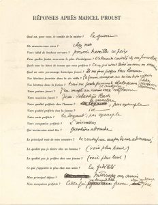 2 pages in-4 en partie impr. REPONSES AU QUESTIONNAIRE DE PROUST pour la revue Livres de France. Duhamel répond aux 41 questions, de la première : " Quel est, pour vous, le comble de la misère ? La guerre ", à la dernière : " Ma devise ? Miracle n'est pas oeuvre ". ON JOINT 2 tapuscrits corrigés d'interviews sur Radio-Cité en 1936, sur l'histoire et le fonctionnement du Mercure de France, dont il a pris a direction, et sur son élection à l'Académie française (4 et 5 pages in-4).