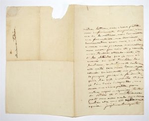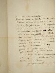 1 page in-8, adresse (légère fente réparée). JOLIE LETTRE DE JOSEPHINE BONAPARTE A THERESA TALLIEN. " Votre lettre, ma chere petite m'a infiniment surprise, rien n'a du la motiver. Vous connoissez ma franchisse, ma derniere conversation avec vous, en a été encore une preuve nouvelle. Vous avez pu voir et y reconnoitre mon tendre attachement, et si les obstacles que je vous ai enoncés en ont troubler le bonheur, ce sentiment douloureux est resté dans mon cour. Soyez assurée qu'ARNAULT n'a pu tenir de propos puisqu'il faudroit qu'il les eut inventés et que je l'en crois incapable. Vous devez ma chere petite, pour votre repos mépriser toutes ses sotisses et si ma tendresse peut vous aider en cela vous savez combien elle vous est entièrement acquise "... ON JOINT la copie d'une autre lettre du 1er fructidor VIII (19 août 1800).