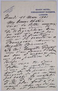 Claude MONET (1840-1926). L.A. (incomplète), London Lundi 11 mars 1901, à SA FEMME ;