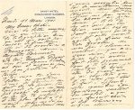 4 pages in-8 à en-tête du Savoy Hotel Il transmet une lettre d'Auguste Brunet, secrétaire de Léon Bourgeois, " bien qu'elle ne soit pas encore définitive "... Sa lettre de vendredi lui a fait de la peine : " tes regrets de ne m'avoir pas caché la maladie de J.P. Ta volonté d'être plus forte à l'avenir. Non ne dis pas cela et pardonne-moi d'avoir assombri pour toi de meilleurs moments. Nous devons toujours nous tout dire - mais ne pas voir les choses au pire. Ainsi je te le dis je ne suis pas très bien, mais cependant mieux qu'hier soir et cette nuit agitée de fièvre et de frissons. Ne vas pas t'alarmer surtout puisque ce ne sera rien, mais hier après avoir fait cette promenade que je te disais, j'ai malgré le bien-être du grand air, j'ai constaté que je n'étais pas tout à fait d'aplomb. Mes jambes douloureuses surtout les molets, ce qui me faisait croire à des varrices enfin étourdissement aussi suis-je bien vite rentré écrire à Mme HUNTER que n'étant pas très bien je la priais de m'excuser. Et bien m'en a pris car la fièvre m'a pris très fort et des frissons à ne pouvoir me réchauffer. L'inquiétude de tomber malade ici de t'inquiéter plus encore, m'obsédait si bien que je n'ai pu dormir qu'au matin après avoir pris aconit et arsenic, dormant alors jusqu'à 10 h. "... Se levant, il a senti que ça ne marchait pas, mais le docteur, qui a prescrit un repos de 3 à 4 jours, estime que ce n'est que " fatigue et rhumatisme causé par un courant d'air, sans doute au Club. Mais pour mes molets surmenés le long de la fenêtre d'où je peinds depuis plus d'un mois mais d'influenza pas trace "... Mme Hunter est venue le visiter... [La fin manque.]