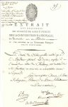 1 page in-fol., vignette de la Convention Nationale, en-tête Extrait des registres du Comité de Salut public de la Convention nationale (bord gauche un peu rogné) ORDRE D'ARRESTATION ET DE DESTITUTION D'UN GENERAL. " Le Comité de Salut-public arrête que l'Adjudant-général PEYRE, employé à l'armée des Côtes de Cherbourg, est destitué de ses fonctions, et sera mis en arrestation comme suspect "..[André-Pacifique PEYRE (1743-1796) sera libéré le 14 septembre 1794, et réintégré en octobre 1795 après les journées de vendémiaire.] _x000D_
