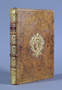 in-4°, basane blonde jaspée, dos à nerfs bien ornés, armes de la ville de Lyon frappées au centre des plats. Ex libris manuscrit sur le titre