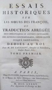 Ensemble : SAUVIGNY : Essais Historiques sur les moeurs des François. Paris, Clousier, 1785-1787 Cinq volumes (sur six );