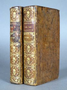 Quatre parties en deux vol. in-12, veau blond, jaspé, orné, de l'époque. L'exmplaire est bien complet du tableau dépliant en fin du deuxième volume. Défauts sur le dos du tome 1.