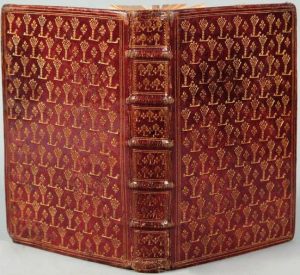 Lcouronnés et de fleurs de lis couvrant les plats et le dos, tranches dorées (Reliure de l’époque). Édition imprimée en rouge et noir, ornée d’un titre gravé et de 3 planches gravées sur cuivre. Exemplaire réglé, dans une jolie reliure d’Antoine Ruette, éditeur et relieur du roi, au semé du chiffre de Louis Xiii. Cachet de Jean Irénée de Péry, évêque de Gap, au verso du titre. Petites taches marginales à quelques feuillets. Frottements à la reliure, petit éclat visible en queue et cassure à un coin.