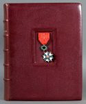 in-4°, plein chagrin rouge de Charles BENOIT. La médaillle de la Légion d'Honneur figure bien sur le plat supérieur. On joint : - BARTHELEMY (Auguste Marseille) et MERY (Joseph) : Napoléon en Egypte. Waterloo et le Fils de l'Homme. Paris, Ernest Bourdin Editeur, 1842. Illustrations par Horace VERNET et Hippolyte BELLANGE. In-8 en feuilles, 17 planches en 1er tirage sur Chine appliqué (rousseurs).