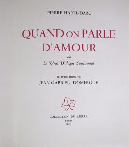 HAREL-DARC (Pierre) : Quand on parle d'Amour, ou le Vrai Dialogue sentimental. Paris, 1948 ;