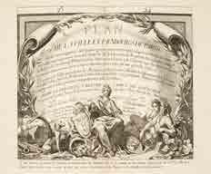orné, tranches rouges (reliure de l’ époque). Première édition. Ouvrage entièrement gravé contenant un plan général de Paris dépliant, un grand plan de Paris en 35 feuilles (ycompris le titre) formant, assemblées, un rectangle de 171 x 14cm, et 14 feuillets doubles de tables (table des rues et des messageries). Une table alphabétique manuscrite d’un feuillet a été ajoutée après le titre. Ce plan de Paris, le premier à être dessiné à si grande échelle (1/4200), est dérivé des travaux et des publications de Delagrive et valut à Deharme le titre de topographe du roi. Bel exemplaire. Ex-libris armorié. (Bonnardot, 209 - Boutier, 272B - Grand-Carteret, Almanachs, 389 - Pinon & Le Boudec, p. 64).