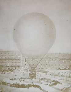 René Prudent DAGRON (1819-1900). Grand ballon captif de la cour des Tuileries, Paris, 1878. Épreuve d'époque sur papier albuminé montée sur bristol. Mention du photographe sur le montage " Dagron, Phot. Paris 31 boulevard Bonne Nouvelle, et 1...