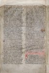Parchemin, 396 × 274 mm. Piqûres au canif et réglure à la mine de plomb définissant une surface d'écriture de 316 x 225 mm. Le texte est copié à l'encre noire en deux colonnes de 100 x 316 mm séparées par une marge d'env. 20 mm.