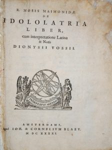 MAIMONIDE (Moïse). De idolatria liber, cum interpretatione latina & notis Dionysii Vossii. [Relié à la suite] : VOSSIUS (Gerard Johann). De theologia gentili et physiologia christiana, sive De origine ac progressu idolatriae… Amsterdami, Blaeu,...