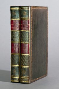2 vol. in-8, XLVIII-456 p., [4] f., + XVI-472 p., 4 planches dépliantes, reliure de l'époque plein veau vert bronze, dos lisses et ornés, pièces de titre et de tomaison maroquin rouge, roulette florale et filet dorés bordant les plats, filet aux coupes, tranches marbrées (brunissures éparses, menus défauts à la reliure soigneusement restaurée).