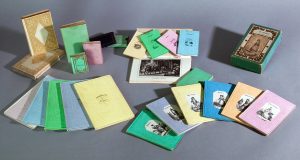 On joint : Impressions de voyages. Promenades pittoresques en France. Paris, Marcilly, [vers 1840]. 6 vol. in-16, cartonnage éditeur de tons pastels variés, plat sup. estampé à froid (rousseurs). Chaque volume est précédé d'un frontispice en lithographie.