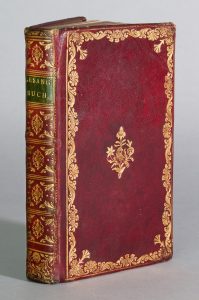 Charmant ouvrage orné en frontispice d'une planche double offrant une belle vue de Strasbourg, gravée sur cuivre par J. Striedbeck. On trouve dans cet exemplaire, relié à la suite : Christliches Gebet-Buchlein… même adresse, 1770, 32 p., vignette gravée sur bois au titre.