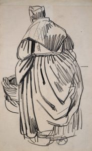 MATHURIN MÉHEUT (1882-1958) Étude de paysanne bretonne, vue de dos. Fusain, signé du monogramme en bas à droite.