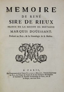 RIEUX DE SOURDEAC (René de). Mémoire de René, sire de Rieux, prince de la maison de Bretagne, marquis d'Oüessant, présenté au roi, & la généalogie de sa maison. À Paris, Impr. Vve Fr. Muguet, [vers 1713].