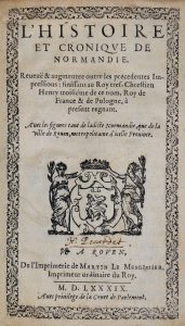 [NAGEREL (Jean)]. L'Histoire et cronique de Normandie. [Relié à la suite] : Description du pays et duché de Normandie, appellée anciennement Neustrie, de son origine, & des limites d'iceluy. À Rouen, de l'Impr. de Martin Le Mesgissier, 1589.