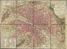 Picquet (Charles). Plan de Paris et de ses faubourgs réduit d’après celui publié en deux feuilles par Ch.les Picquet. Avec tous les changements survenus jusqu’en 1809. Paris, 1809. En 8 sections montées sur toile et pliées, formant une carte de