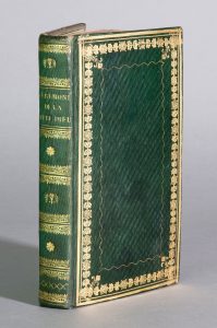 In-12, 220-II p., frontispice et 13 pl., reliure époque Restauration maroquin à long grain vert, dos lisse et orné, titre doré, plats décorés d'un cadre de filets et roulettes multiples avec fleurs de lys en fleurons angulaires, pointillé aux coupes, roulettes aux bords des contreplats, le tout doré, tranches dorées (qq. légers frottements aux coupes, rares rousseurs).