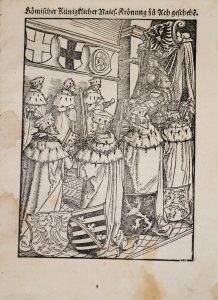 [Charles Quint]. Römischer Künigklicher Maies. Krönung zuu Ach geschehe[n]. [Augsburg : Sigmund Grimm und Marx Wirsung, 1520].