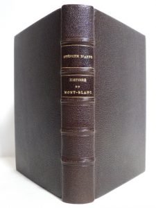 ARVE (Stephen d'). Histoire du Mont-Blanc et de la vallée de Chamonix. Ascensions et catastrophes célèbres depuis les premières explorations (1786) jusqu'à nos jours. Paris, Ch. Delagrave, 1878. In-8, XXI + 494 pp., chagrin noir, couverture...