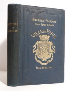 ARVE (Stephen d'). Histoire du Mont-Blanc et de la vallée de Chamonix. Ascensions et catastrophes célèbres depuis les premières explorations (1786) jusqu'à nos jours. Paris, Ch. Delagrave, 1878. In-8, XXI + 494 pp., toile bleu nuit, fers du Prix...