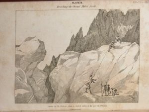 Ouvrage illustré de deux planches lithographiées hors texte. Tiré à part de l'article du magasine d'Édimbourg, paru 4 mois seulement après l'ascension. Les deux planches exécutées par Th. Verhas d'après les dessins de l'auteur sont d'une facture différente de celle des éditions suivantes. Ex-dono sur les pages de garde, dos frotté, article nécrologique de Thomas Barry collé en frontispice. Regards sur les Alpes, [50-B].