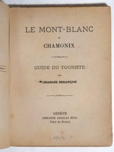 BESANÇON (Charles). Le Mont-Blanc et Chamonix. Guide du touriste contenant les noms des ascensionnistes au Mont-Blanc. Genève, Imp. De Charles Menz, [Vers 1874]. In-12, 136 pp., broché.
