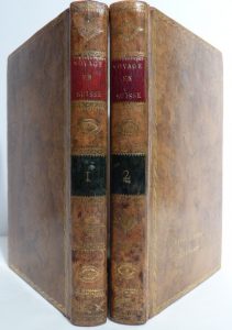 CAMBRY (Jacques). Voyage pittoresque en Suisse et en Italie. Paris, H. J. Jansen, 1801. 2 volumes in-8, 341 pp. et 377 pp., veau raciné, dos lisse orné, pièces de titre et de tomaison, roulette dorée en encadrement sur les plats, tranches...