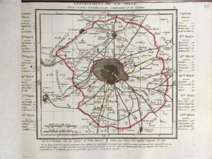 [CARTE]. ATLAS DE LA FRANCE divisée en départemens. Paris, Chez Garnieri, Libraire, rue de Seine, hôtel Mirabeau, An X, 1802. In-4 oblong, basane fauve, dos lisse orné, étiquette de titre en maroquin rouge, 18 pp. + 101 cartes.