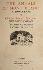MATHEWS (Charles-Edward). The Annals of Mont-Blanc - A monograph. Londres, T. Fisher Unwin, 1898. In-8, XXIV + 367 pp., cartonnage illustré (Reliure de l'éditeur).