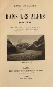 ORLÉANS (Louis d'). Dans les Alpes 1896-1898. Mont-Blanc - Aiguille du Midi - Mont-Rose - Mont-Cervin. Paris, Plon-Nourrit et Cie, 1900. In-8, 95 pp., bradel percaline grise, étiquette de titre en maroquin grenat, couverture (Reliure de l'époque).
