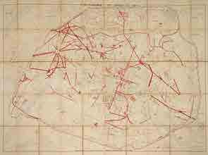 Andriveau-Goujon (Eugène). Plan d’ensemble des travaux de Paris. Paris, E. Andriveau-Goujon, 1868. En 50 sections montées sur toile et pliées, formant un plan de 1,02 x 1,34 m, monté dans une reliure de toile bleue avec étiquette contenant le