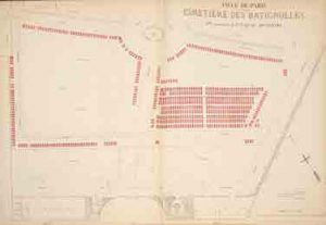 plat (reliure de l’ époque). Très rare atlas des cimetières des anciennes banlieues de Paris annexées en 1860. Il contient un titre imprimé, 4 feuillets de texte contenant la description de chaque cimetière avec l’historique et le nombre de concessions, et 15 plans doubles ou dépliants, au 1/200e, figurant les cimetières de Belleville, Bercy, Charonne, La Villette, des Batignolles, du Calvaire, La Chapelle, Saint-Ouen (ancien), Saint-Vincent, Auteuil, Grenelle, Passy et Vaugirard. Déchirures sans manques à 3 plans, coins, coupes et coiffes usagés, mors frottés, éraflures sur les plats. Très rare, aucun exemplaire à la bnf.