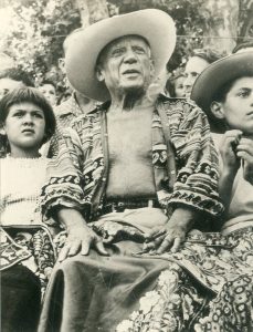 PICASSO.- "Pablo Picasso et ses enfants Paloma et Claude à Vallauris" (1957).