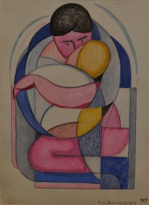 Gouache et crayon sur papier, datée, signée au coin infér. droit et montée sous passe-partout et cadre en bois blancs. Dim. cadre : 52,5 x 42,5 cm ; sujet : 35 x 25 cm.