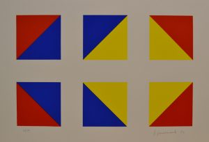 Sérigraphie originale en 3 couleurs tirée sur vélin de Rives, just. 36/90, datée et signée au crayon. Brux., Galerie Triangl, 1987, dim. support et sujet : 37,5 x 55 cm.