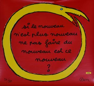 BEN (Benjamin Vautier, dit). "Si le nouveau n'est plus nouveau ne pas faire du nouveau est ce nouveau ?".