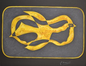 Lithographie d'interprétation en couleurs d'après une gouache originale de Braque, signée dans la planche. P., A. et G. Israël, 1988, dim. support et sujet : 45 x 58 cm.
