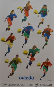 Affiche lithographiée sur papier d'édition pour la Coupe du monde de football en Espagne. P., Maeght, 1982, dim. : 95 x 60 cm.