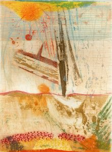 Eau-forte et aquatinte originale en couleurs tirée sur vélin d'Arches, titrée, just. 89/99 et signée au crayon. P., J. de Champvallins ; Atelier Leblanc, 1990, dim. support : 50 x 32,5 cm ; sujet : 24 x 18 cm (René Carcan, Catalogue raisonné, 747).