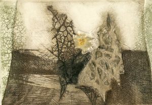Eau-forte et aquatinte originale en couleurs tirée sur simili Japon, just. 8/25 et signée au crayon. Brux., Cap d'Encre, 1968, dim. support : 32,5 x 24 cm ; sujet : 10 x 14 cm.